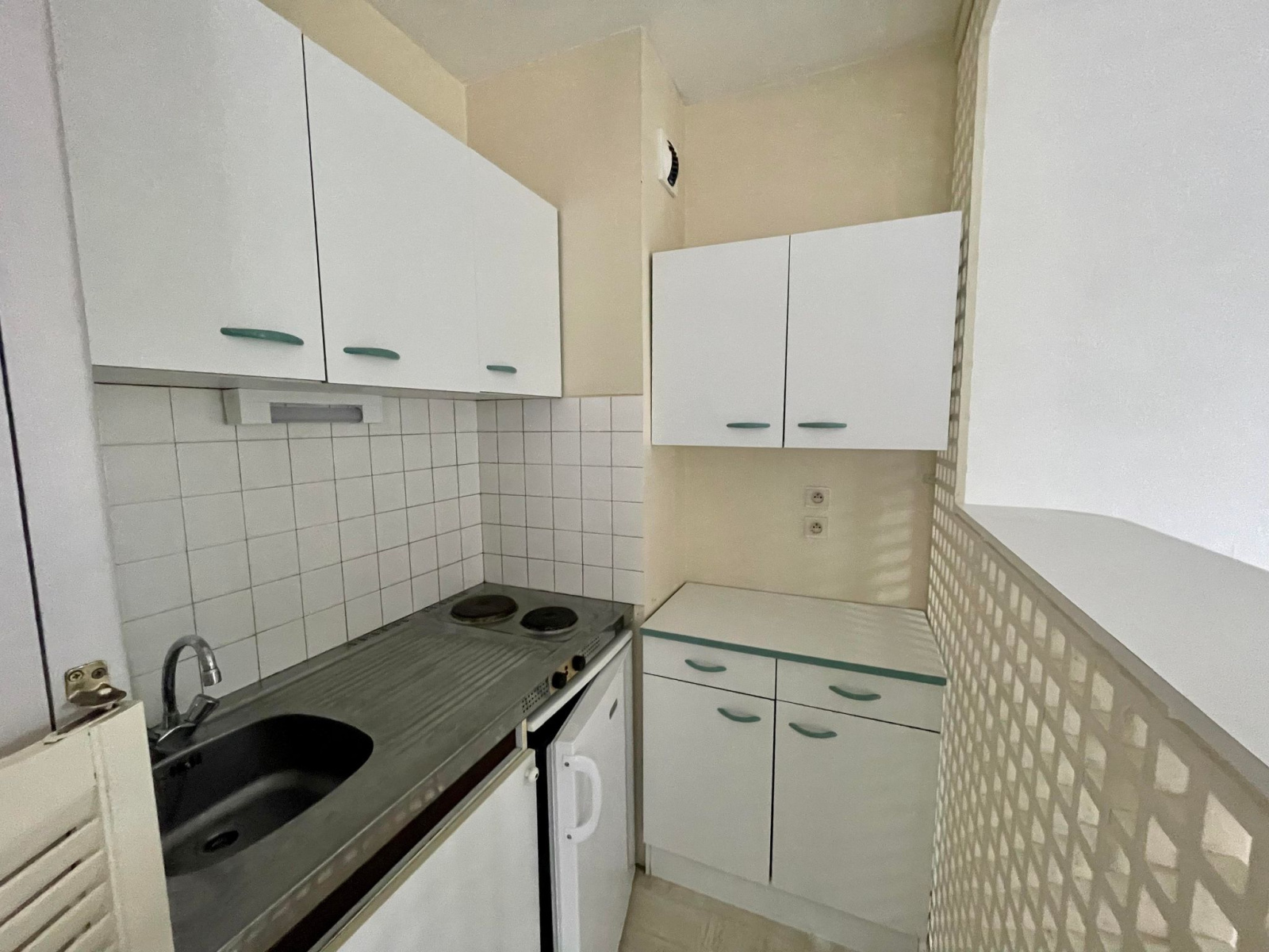 Secteur Limoges Ouest, rue Jules Vallès : studio de 27,63 m² situé au 1er étage avec ascenseur. Il se compose d’une pièce de vie avec cuisine américaine équipée (plaques, réfrigérateur, bar) et placard, ainsi que d’une salle de bains avec WC.