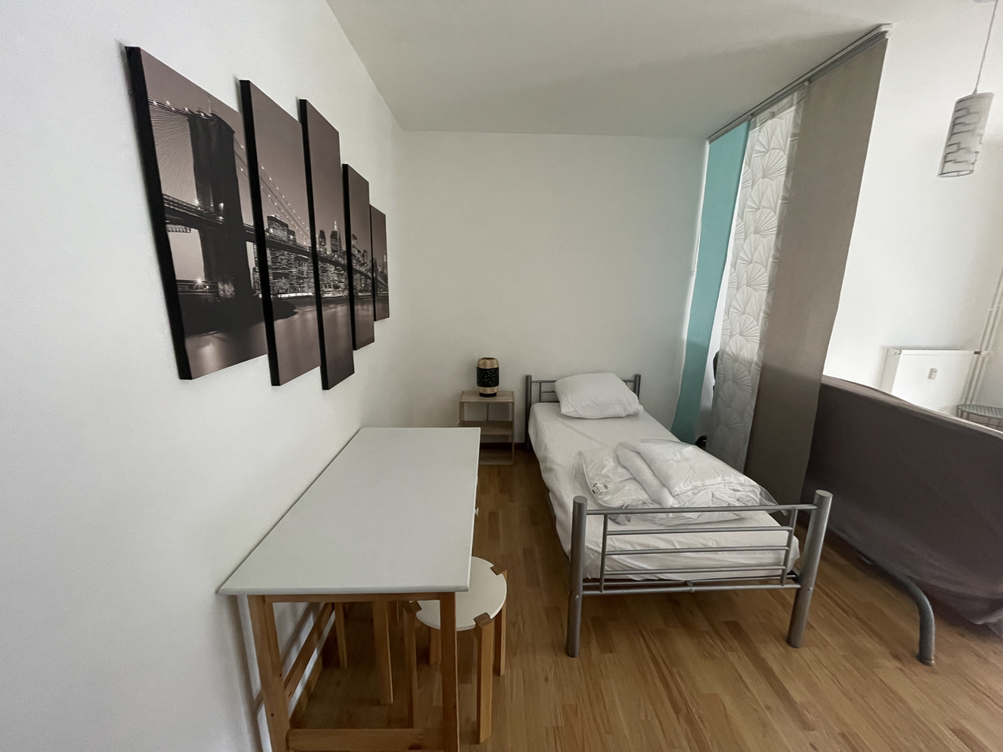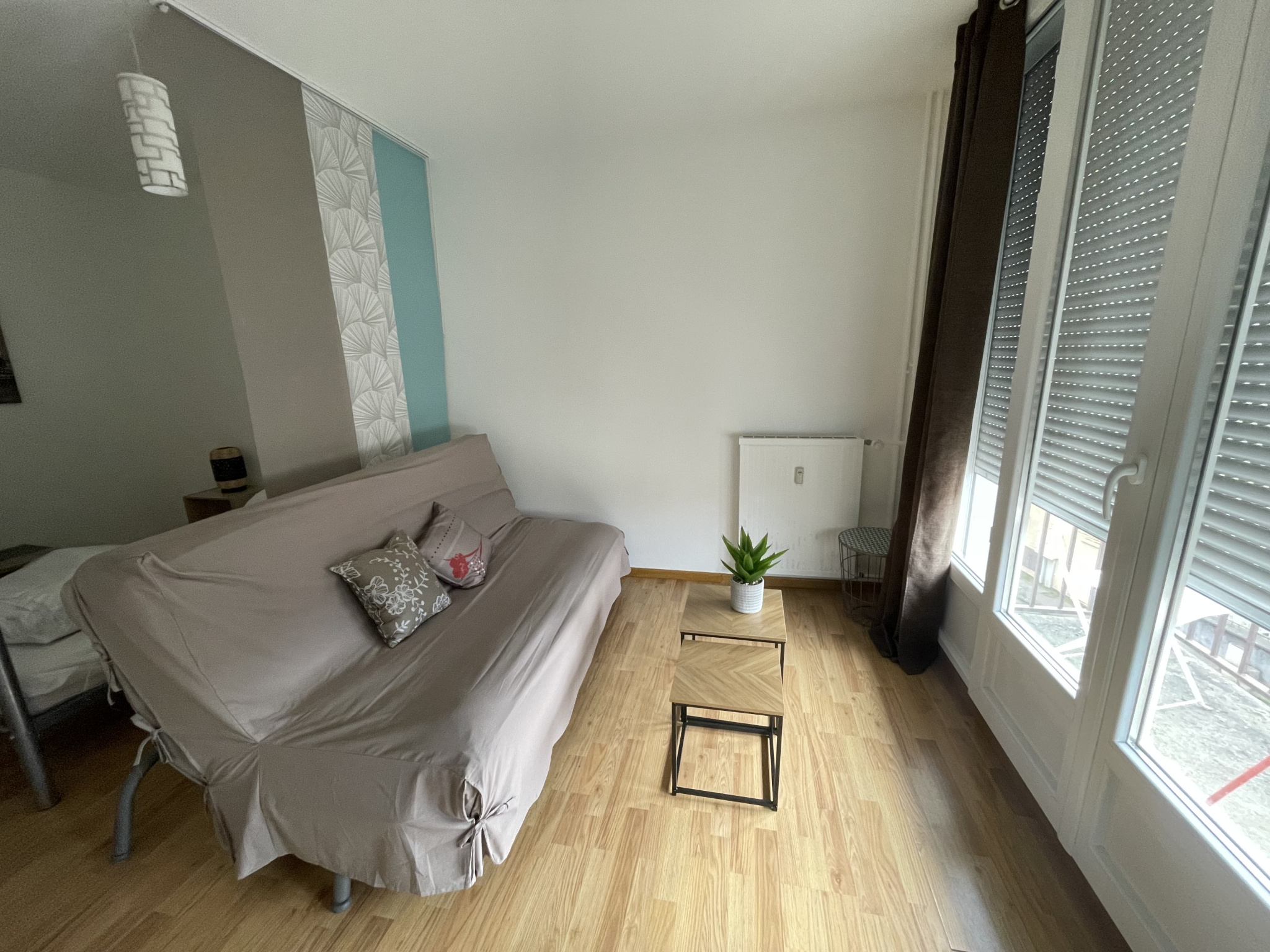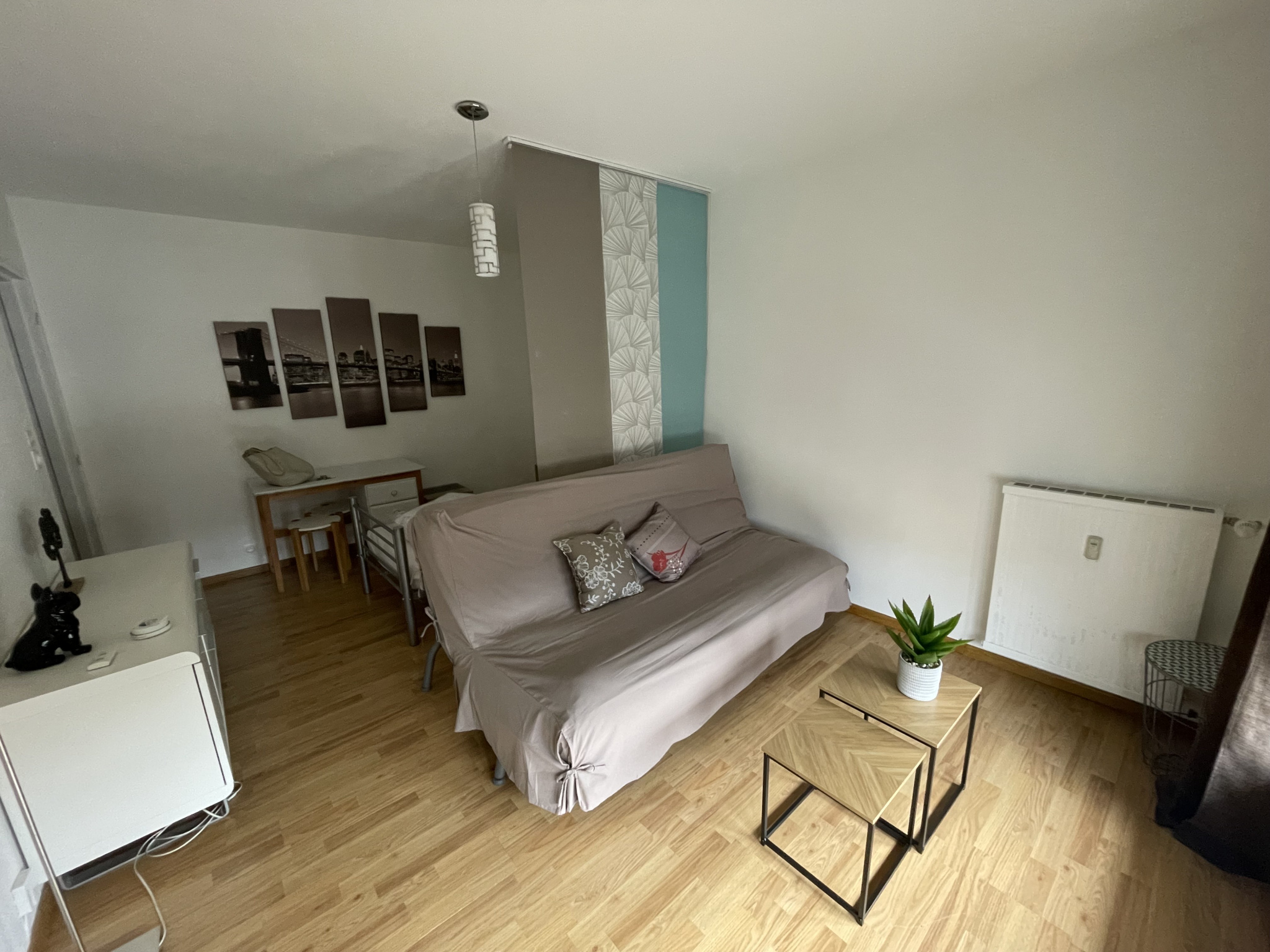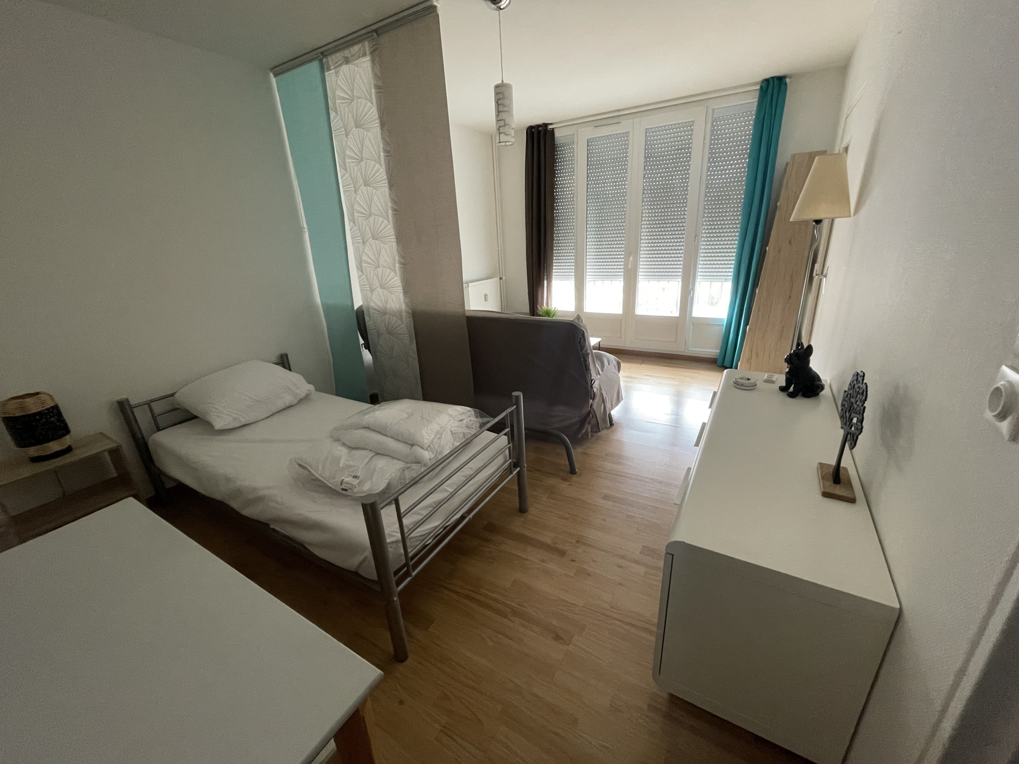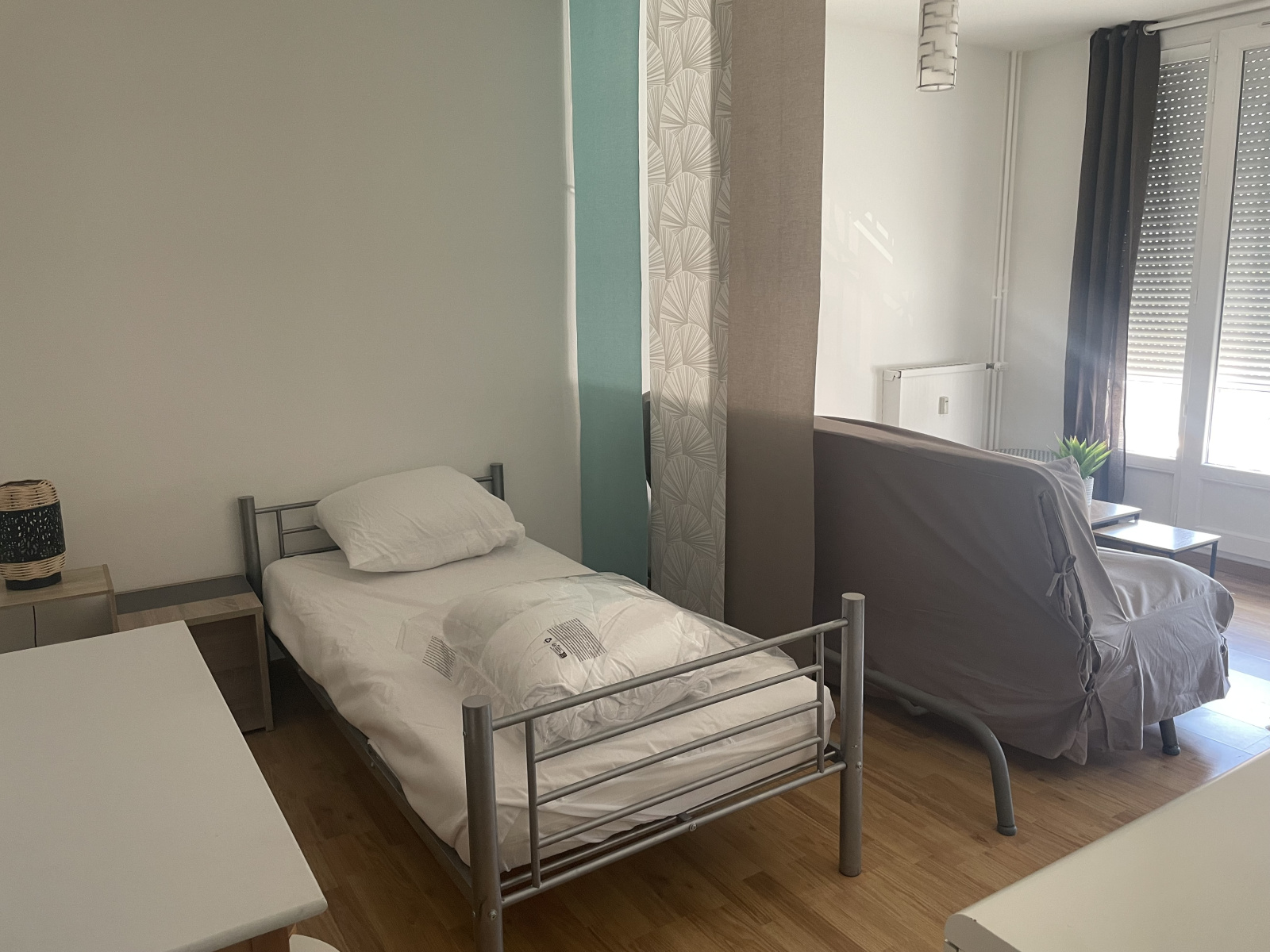 Secteur François Perrin, appartement de type 1 meublé, situé au 2ème étage, d'environ 29m², composé de : entrée avec placard, pièce principale avec coin nuit ouvrant sur balcon, cuisine aménagée et équipée, salle de bain avec WC.