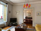 Aux pieds des Galeries Lafayette, appartement de caractère (cheminées, parquet, moulures) de 158m², situé au 2ème étage (sans ascenseur), composé d'une grande entrée, salle de billard, séjour, salle à manger avec un accès direct sur une terrasse de 33m², cuisine séparée aménagée et équipée, deux chambres, une salle de bains, wc séparé.