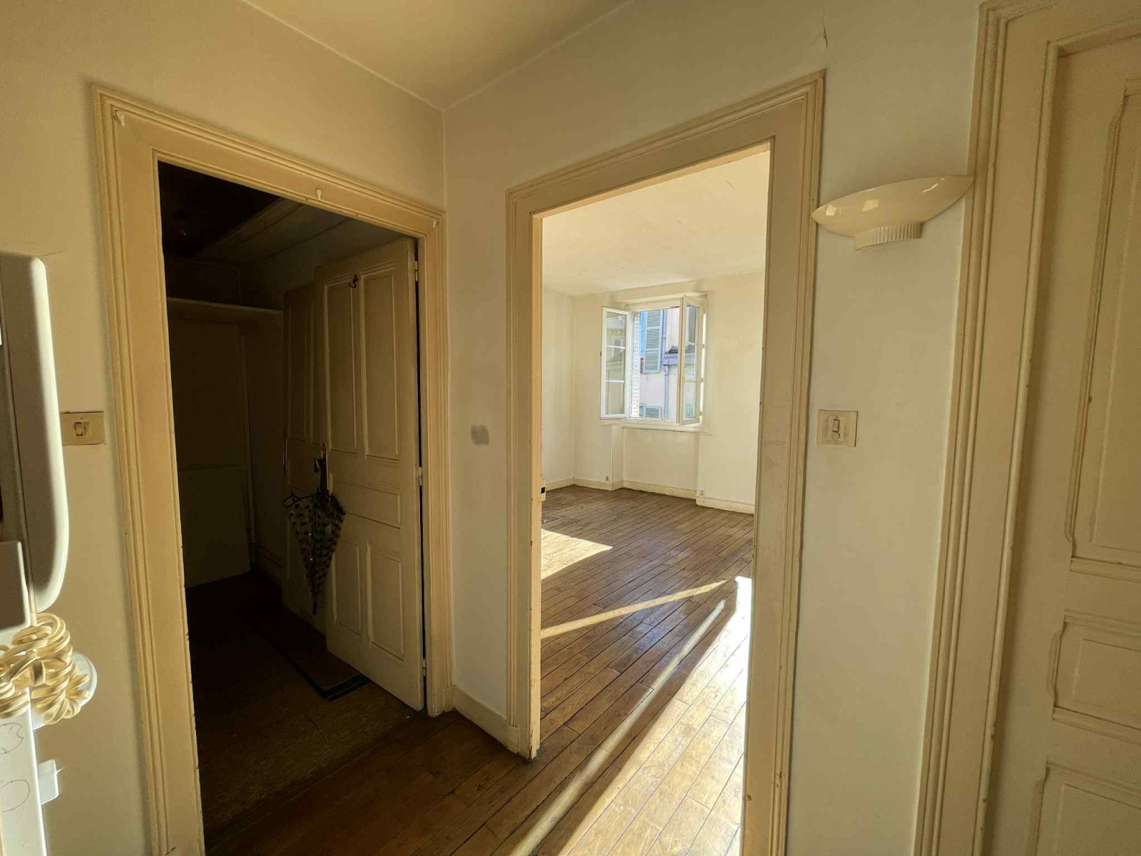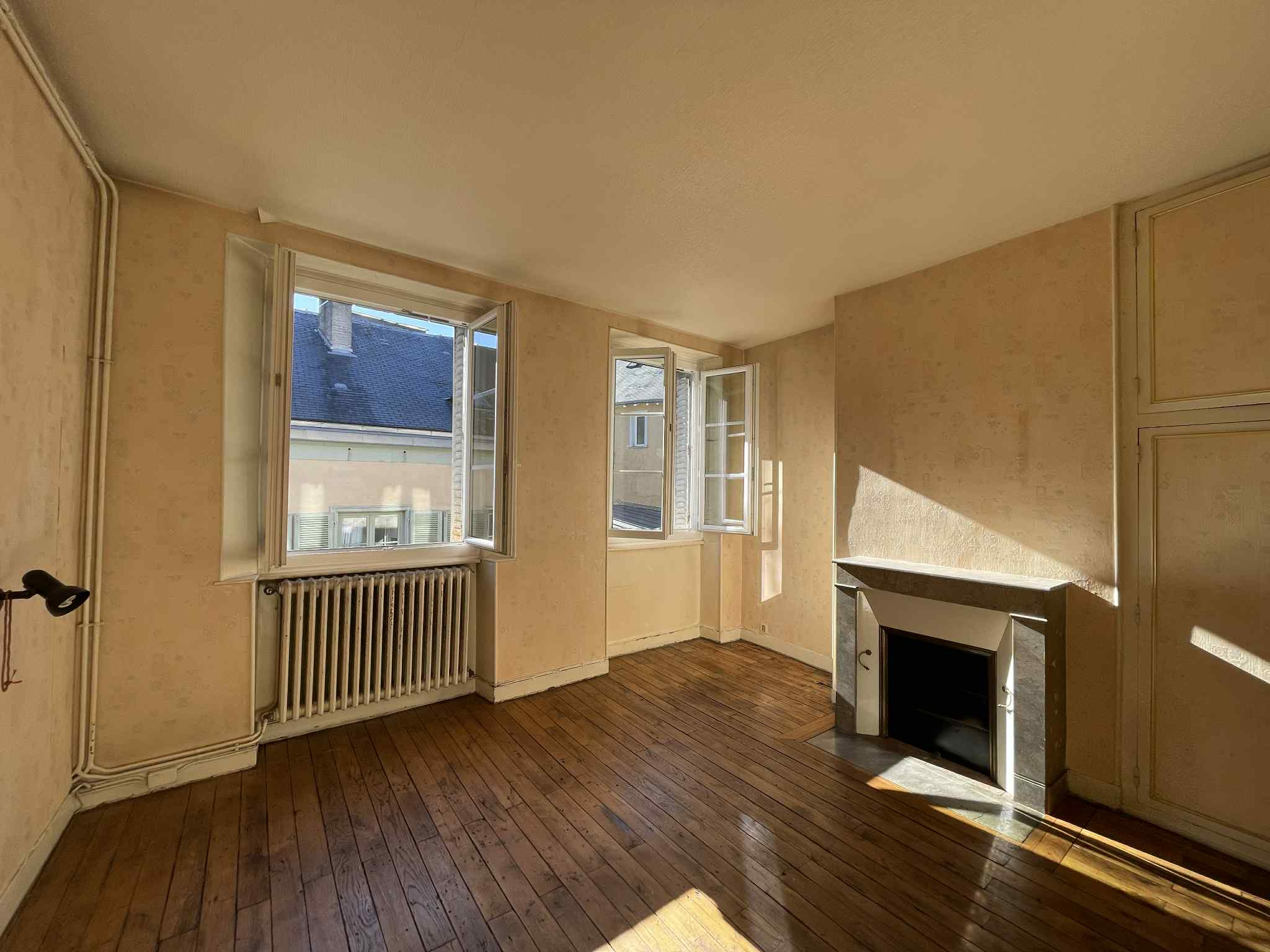 Proche place des Bancs, au 3eme étage d'un petit immeuble, beau T2 traversant de 50,72m²: entrée avec placard/dressing; séjour avec parquet et cheminée marbre, chambre avec placard, salle d'eau, cuisine et WC séparé.